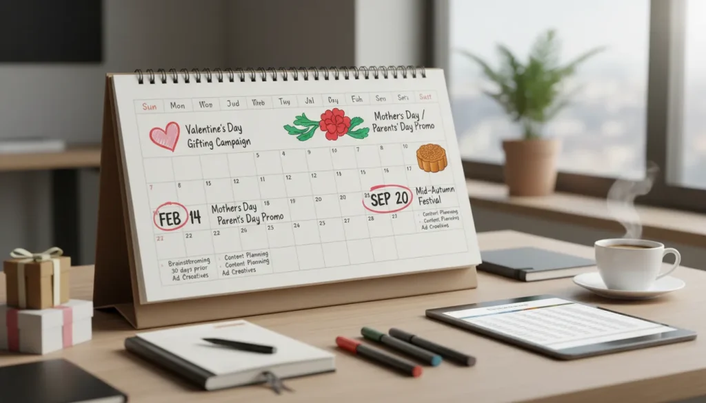 시즌별 핫이슈 키워드 마케팅 캘린더 미리 작성하기: 명절 어버이날 발렌타인데이 등 기념일 한 달 전부터 기획전 준비